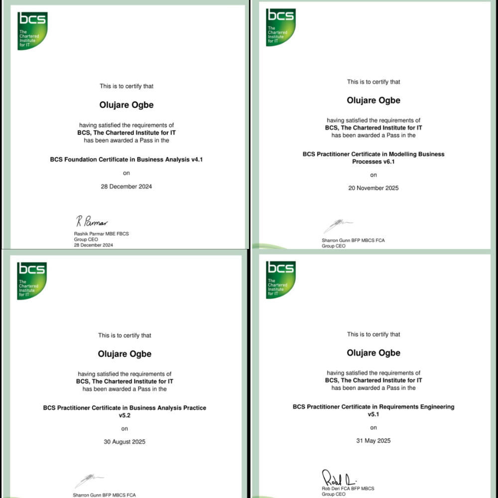 Towards the end of 2024, I enrolled for a diploma program in business analysis with the British Computer Society, after picking up interest in the tech space.